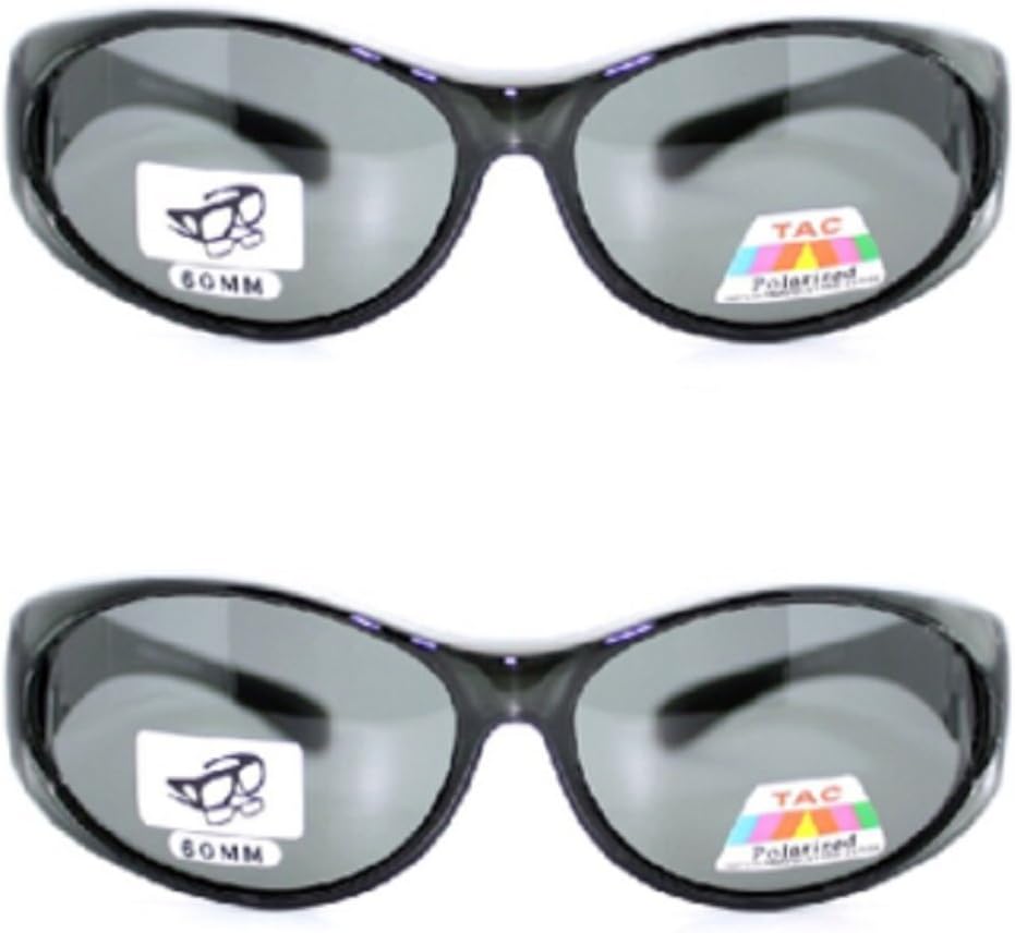 Fit Over Cover Over sunglasses are perfect for women who want the benefit of sun protection while wearing their eyeglasses. They're lightweight with an anti-glare lens and easy to slip on over all kinds of eyewear. These glasses are designed to wrap around your face blocking the sun from the sides. All sizes are polarized which will increase clarity, reduce eye fatigue, and glare protection while golfing, driving, fishing and all water sports and outdoor activities. Available in Blue, Red, Purple, Grey and Brown. Size Small. One Microfiber cleaning carrying case included per pair of sunglasses.