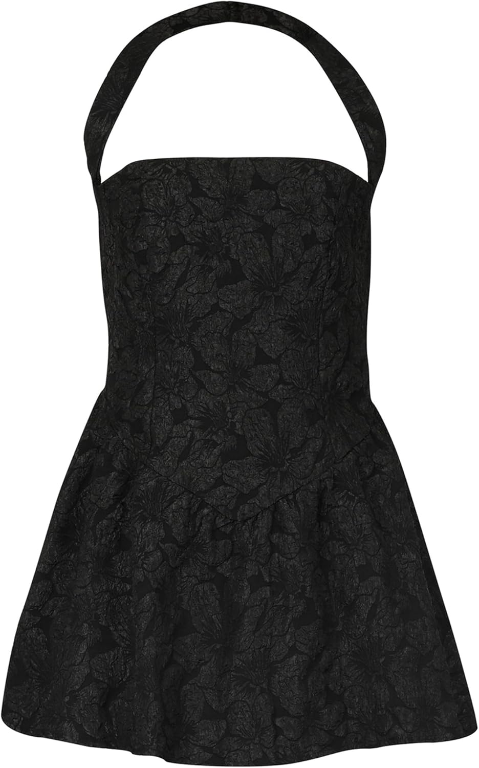 Figdaw Metallic Halter Mini Dress, Fit and Flare, Pleated Bubble HemEnhance your style with our Elegant Floral Jacquard Metallic Halter Mini Dress. Crafted from jacquard fabric, it features a shimmering metallic finish and a beautifully embossed floral pattern. The fit and flare silhouette accentuates your curves, while the halter neckline adds a touch of sophistication. An open back design makes it perfect for evening events or parties.Effortlessly stylish and eye-catching, this dress turns heads wherever you go.