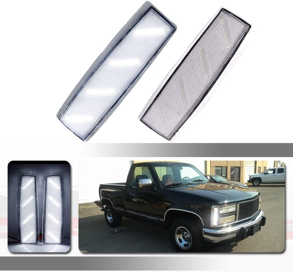 Fitment: Type of Lights: LED Front side marker lights with Amber lens For: 88-93 C1500 (submodel: Sierra, Sierra SLE, Sierra SLX) Full-size Pickup, With Dual Sealed Beam, With Composite Headlamps, Old Body Style 92-93 C1500 Suburban (submodel: Base, SLE) With Composite Headlamps 88-93 C2500 (submodel: Sierra, Sierra SLE, Sierra SLX) Full-size Pickup, With Dual Sealed Beam, With Composite Headlamps, Old Body Style 92-93 C2500 Suburban (submodel: Base, SLE) With Composite Headlamps 88-93 C3500 (submodel: Sierra, Sierra SLE, Sierra SLX) Full-size Pickup, With Dual Sealed Beam, With Composite Headlamps, Old Body Style 93 K1500 Sierra Sport Full-size Pickup, With Dual Sealed Beam, With Composite Headlamps, Old Body Style 88-93 K1500 (submodel: Sierra, Sierra SLE, Sierra SLX) Full-size Pickup, With Dual Sealed Beam, With Composite Headlamps, Old Body Style 92-93 K1500 Suburban (submodel: Base, SLE) With Composite Headlamps 88-93 K2500 (submodel: Sierra, Sierra SLE, Sierra SLX) Full-size Pickup, With Dual Sealed Beam, With Composite Headlamps, Old Body Style 92-93 K2500 Suburban (submodel: Base, SLE) With Composite Headlamps 88-93 K3500 (submodel: Sierra, Sierra SLE, Sierra SLX) Full-size Pickup, With Dual Sealed Beam, With Composite Headlamps, Old Body Style 93 Yukon GT For Vehicles With Composite Headlights, Without Denali Package 92 Yukon Sport For Vehicles With Composite Headlights, Without Denali Package 92-93 Yukon (submodel: Base, SLE) For Vehicles With Composite Headlights, Without Denali Package