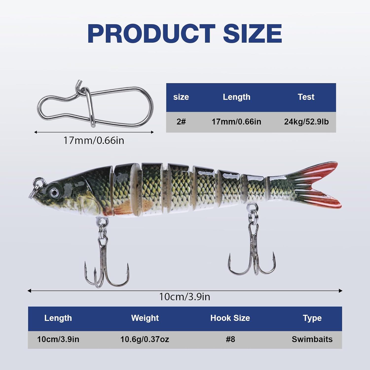 | Color | E3:12pcs Bass Lures with 40pcs Snaps |