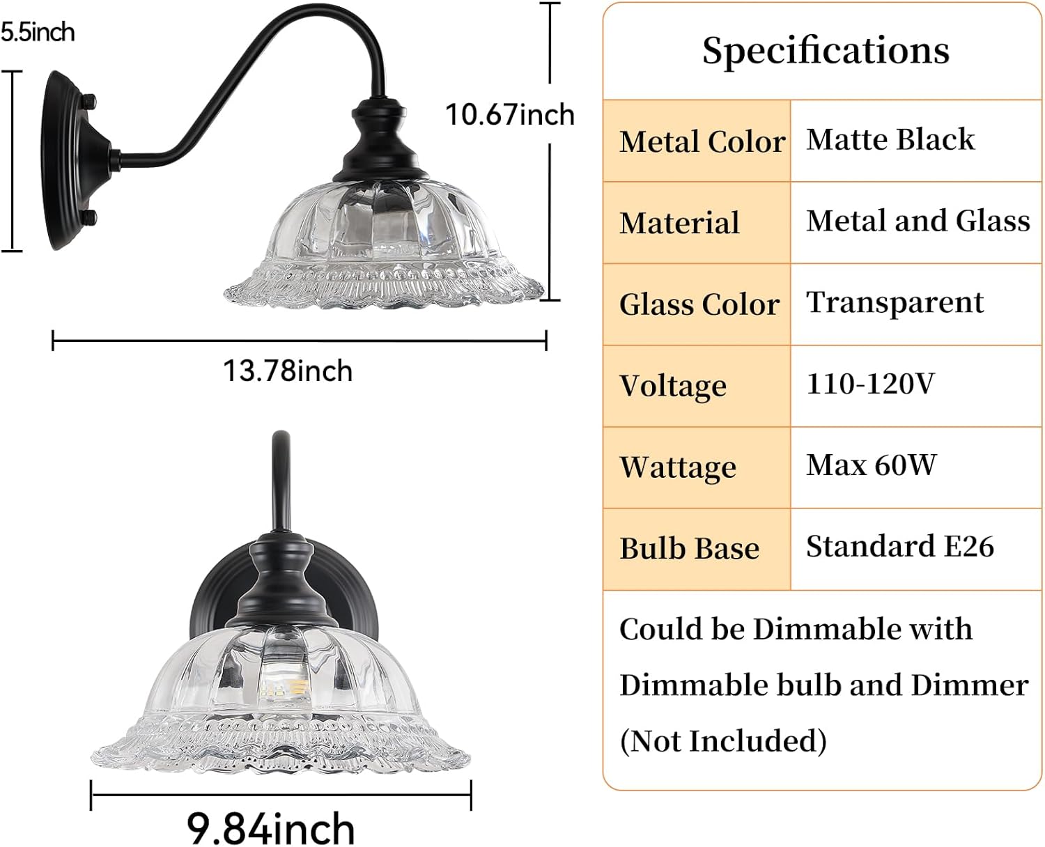 | Included Components | Shade, wall scones body |