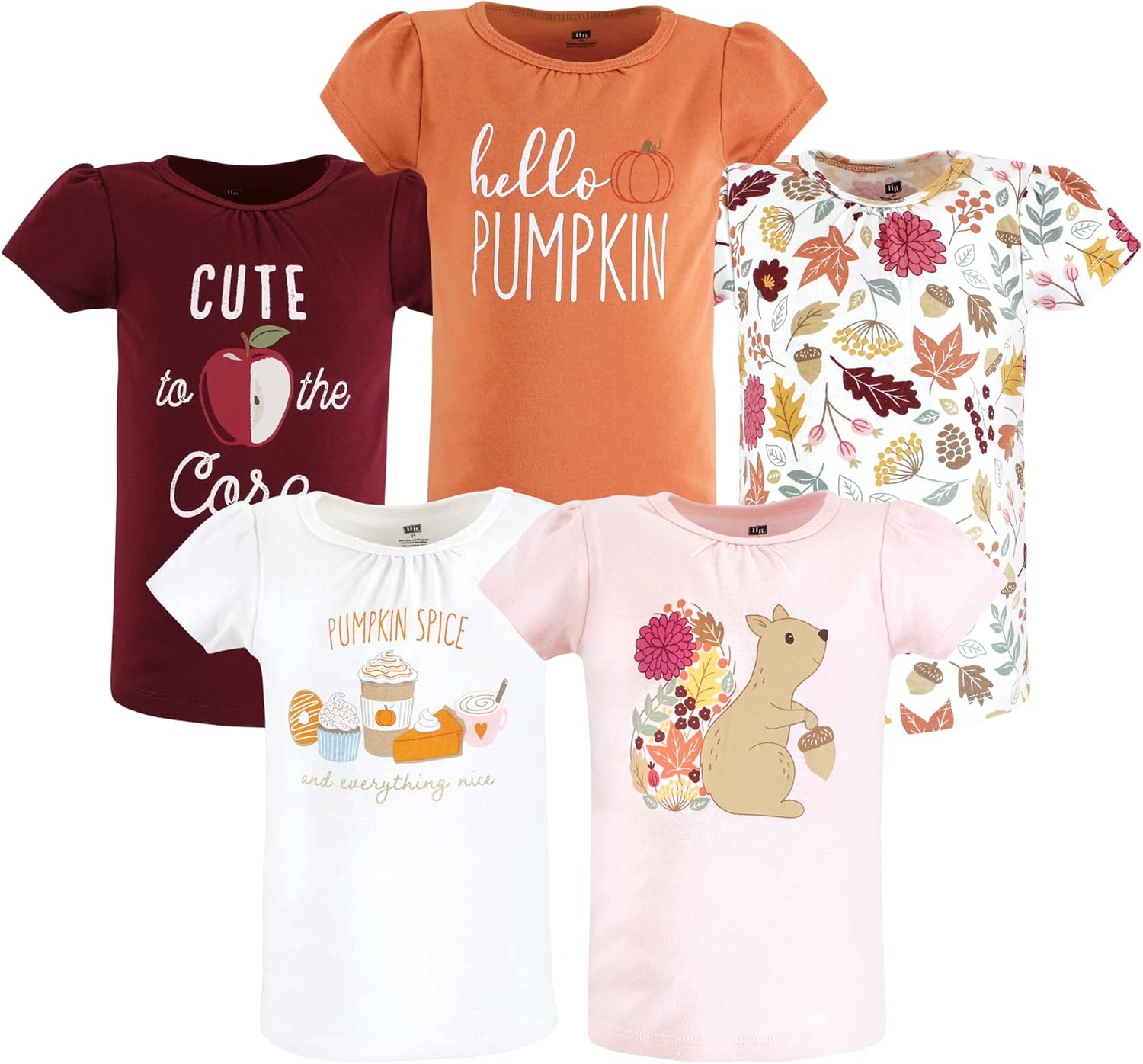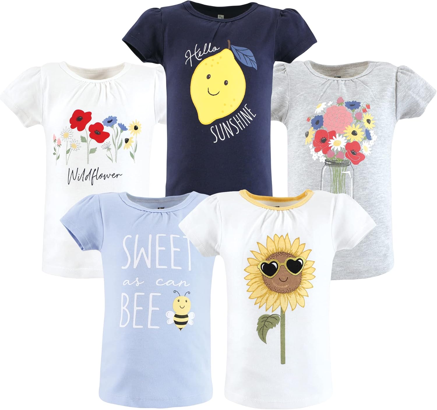 Hudson Baby t-shirts are great everyday tops for your little ones. Featuring fun prints and patterns, our t-shirts are made with comfortable, soft cotton poly fabric that feels wonderful on children's skin. Our sets include five t-shirts so you can mix and match with your child's wardrobe for fun everyday outfits.