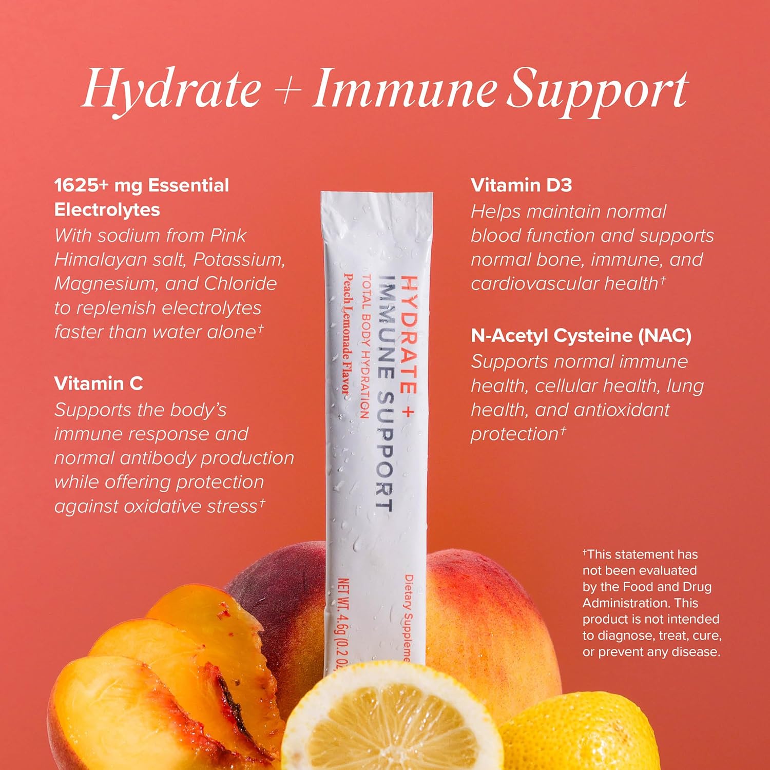 Reimagine hydration with Isagenix Hydrate + Immune Support – Peach Lemonade, a delicious electrolyte beverage that merges optimal hydration with immune-enhancing nutrients. Each convenient packet delivers over 1,625mg of essential electrolytes—including sodium, potassium, magnesium, and chloride—for optimal fluid balance and muscle function. Enhanced with whole-food–sourced Vitamin C, Vitamin D3, and N‑acetylcysteine (NAC), this low-calorie (10 cal) mix supports natural immune defense. Naturally flavored and colored using beet and annatto extracts, Peach Lemonade offers a clean, refreshing taste and vibrant hue—free from added sugars, artificial colors, flavors, or preservatives. Perfect for post-workout, travel, cleanse days, or daily wellness routines, this vegan-friendly, shelf-stable formula hydrates and supports your body with ease. This statement has not been evaluated by the Food and Drug Administration. This product is not intended to diagnose, treat, cure, or prevent any disease.