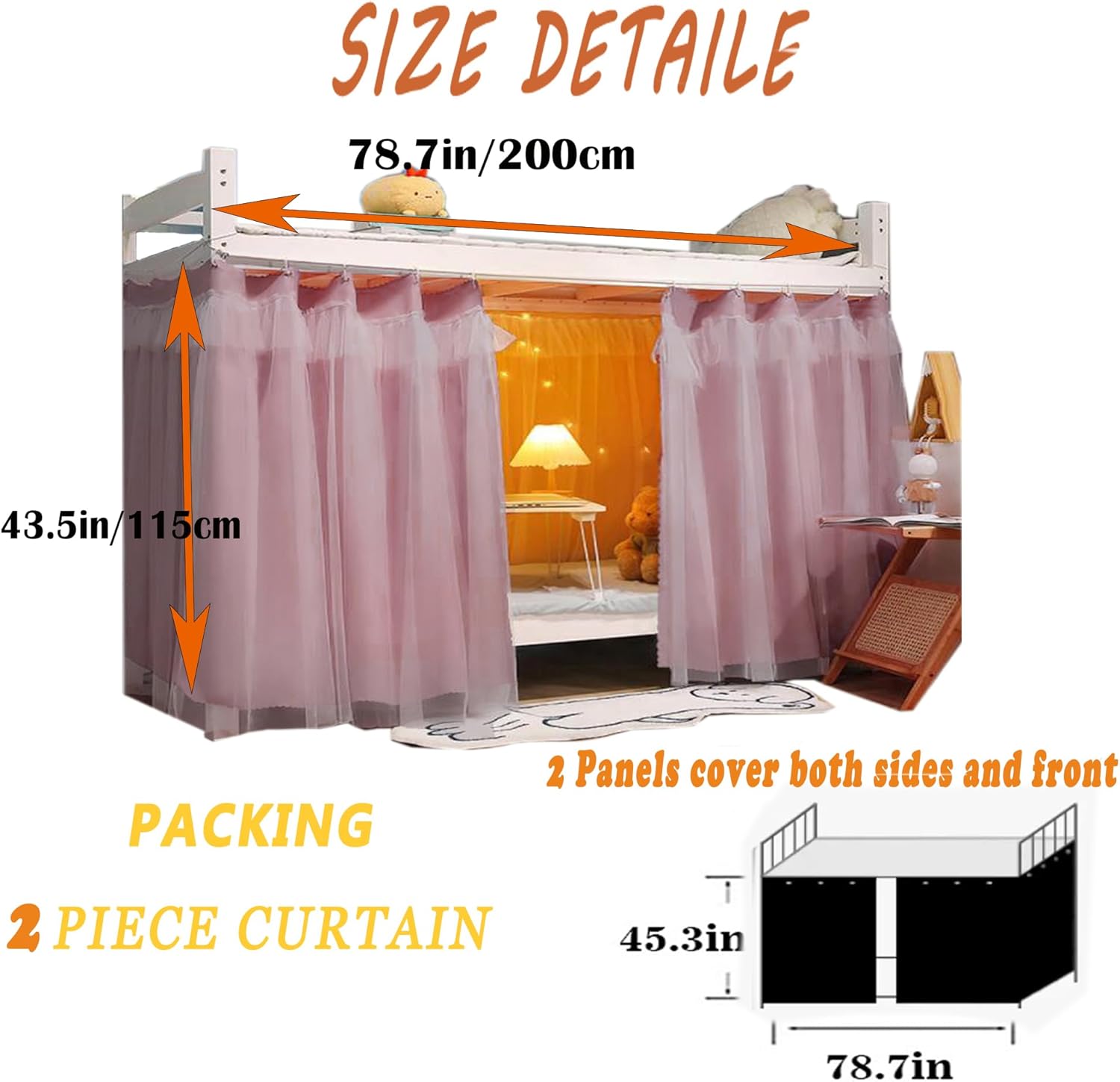 High quality Dormitory Bunk Bed CurtainsHigh Material: 100% Polyester. Medium thickness polyester cloth, durable and easy to wash.At the same time the fabric is soft and breathe well, offer you comfortable use experience in all the four seasons.Filter Approx 30% Light: The fabric can filter out 30% light, dark color has better light filtering effect than light color. We strictly check the quality of every product,Please rest assured to buy Simply hang the Black Out Canopy and you have an instant room, for a work desk, office, TV, work out place, privacy,etc. No matter at day or night, the curtain will make a more cozy environment for sleeping.Sensitive to light when you sleep. Black out the world with the Perfect Roommate---Bunk Bed Curtain."
