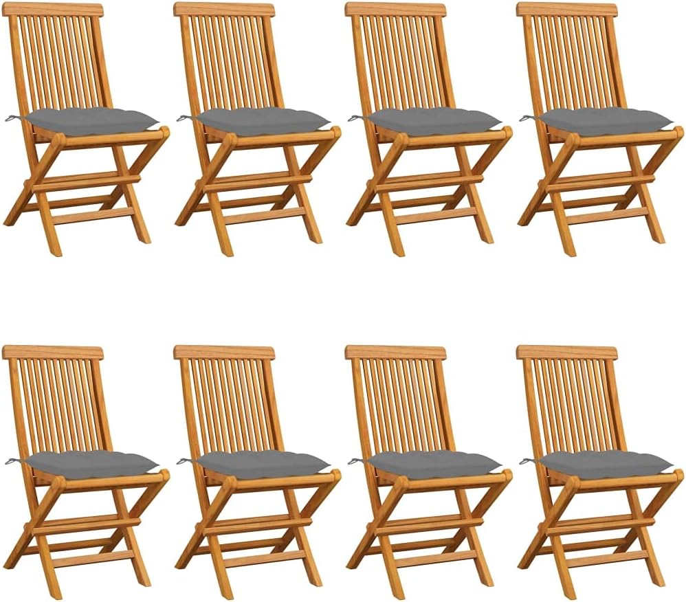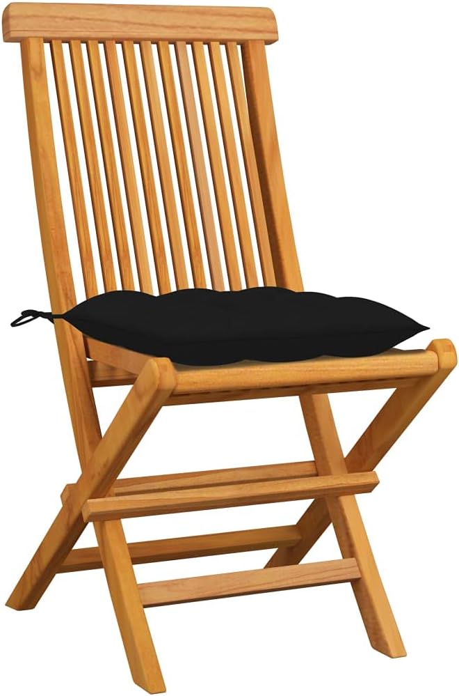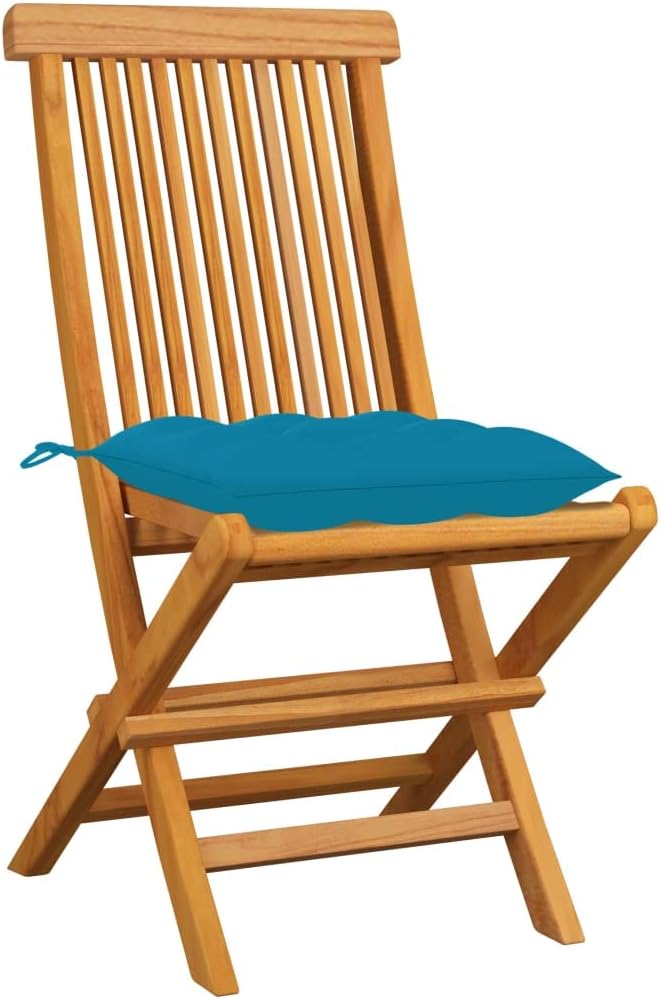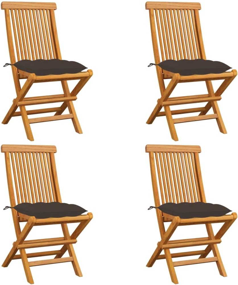 These wooden folding patio chairs, featuring a simplistic yet elegant design, is meant to bring you a comfortable seating experience.Constructed from extremely durable teak hard wood, this piece of teak furniture has been seasoned, kiln dried and then fine sanded to give a very smooth appearance. Teak wood is known for its exceptional strength and weather resistance, making it far more suitable for patio furniture than any other kind of wood. Teak wood is the choice if you want to purchase a long lasting piece of patio furniture.The sanded surface is easy to clean with a damp cloth. These patio dining chairs are also lightweight, making them completely flexible and easy to move around. The outdoor chairs can be easily folded when not in use. Additionally, the thickly padded seat cushions also provide extra seating comfort.Cushion color: RedMaterial: Fine sanded teak hard wood with waterbase finishCushion material: 100% polyesterDimensions: 18.5" x 23.6" x 35" (W x D x H)Seat depth: 14.6"Seat height from the ground: 18.1"Cushion dimensions: 15.8" x 15.8" x 2.8" (L x W x T)Delivery contains:4 x Garden chair4 x Seat cushion