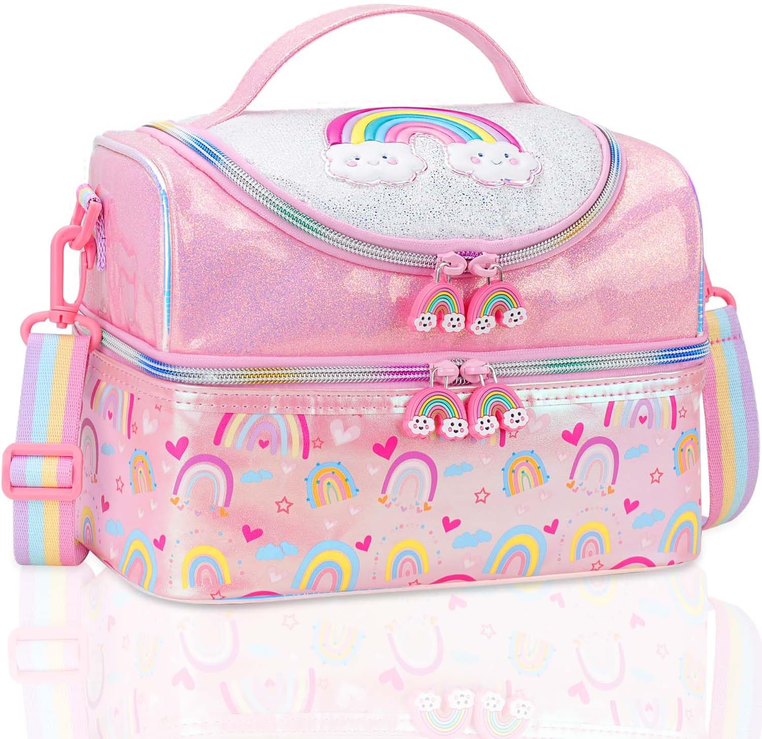 RHCPFOVR Kids Lunch Bag - Double - Decker Cooler Insulated Lunch Box for Boys Girls Women,Washable Lunch Bag with Strap and Reusable Toddler Lunchbox for School and Daycare