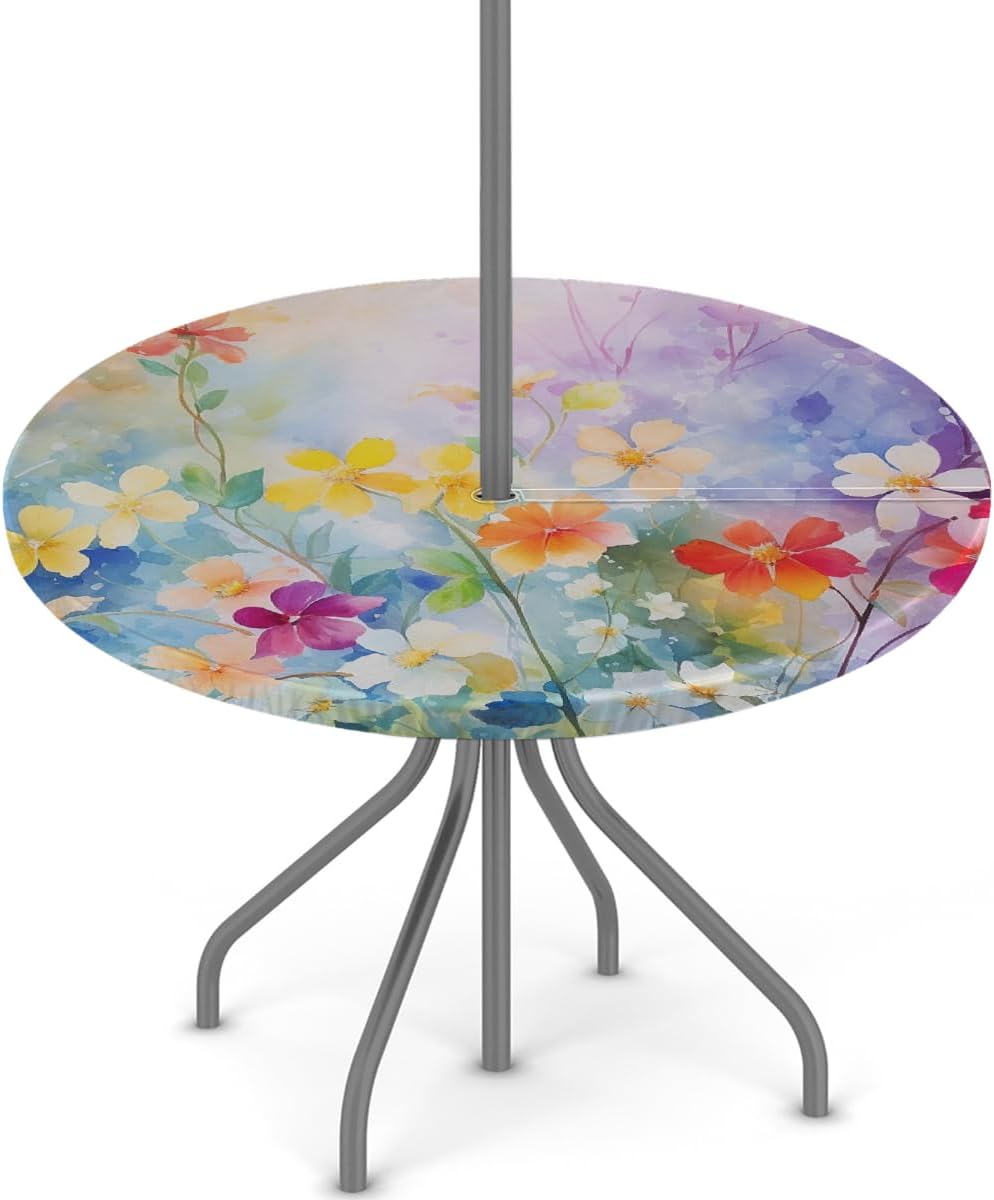Round Outdoor Tablecloth with Umbrella Hole and Invisible ZipperSize:Two sizes of round fitted tablecloth1. Patio table covers fits 36-44 in tables2. Patio table covers fits 45-56 in tablesPlease choose the correct table cloth before purchaseMaterial:Made of high quality polyesterFeatures:Waterproof, oil-proof, tear resistant fabric, durable for long lasting useProtect yout tables from oil, water or scratches, and prolong the service life of the tableTablecloths are clearly printed, beautifully patterned, not easy to fade, reusable, and can make old tables look brand new.Outdoor tablecloth with umbrella hole and invisible zipper, easy to install and removeTable cover with elastic edges, perfectly fit to the table and fixed, elastic edge effectively prevents the tablecloth from slipping or being blown up by the wind.Widly application and use, suitable for home, kitchen, picnic, outdoor patio tables, garden table, wedding, party etc.Perfect gifts ideal for families or friends when housewarming or Easter, Halloween, Thanksgiving, Christmas, New Year etc.Purchase Notes:Manual measurement, please allow 1-2 cm errorDifferent monitor resolution, please allow slight color difference, please refer to the actual product!