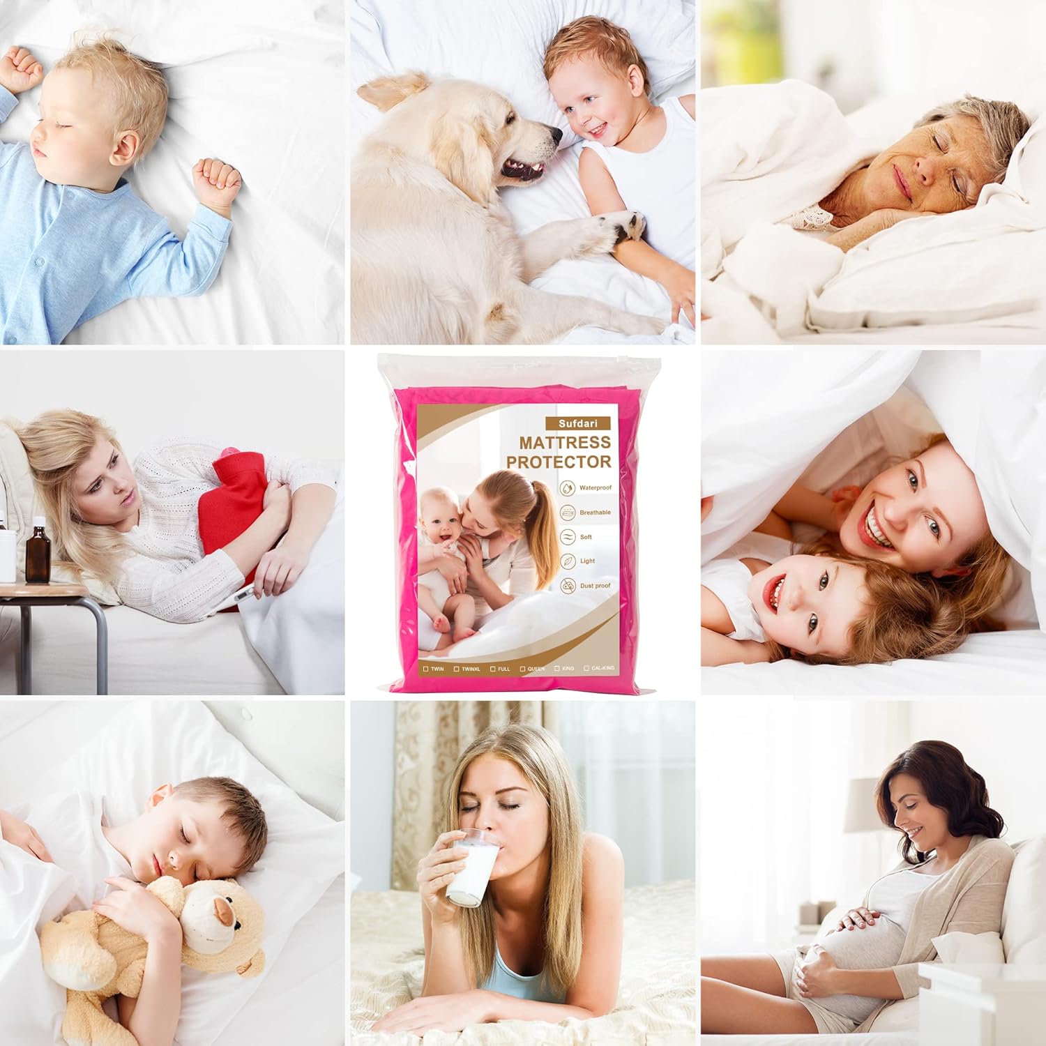 • Get Rid of Your Troubles: Sufdari waterproof mattress protector is suitable for many kinds of scenarios, such as baby bedwetting, puppy accidents, elderly people with limited mobility, middle-aged people with insomnia and night sweats. The mattress cover will protect your mattress from damage